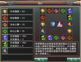 工欲善其事必先利其器,武器、装备对于很多驰骋江湖的侠客来说可是等同生命的纯在。因而游戏也特备为大家准备了三大类装备强化,以帮助各位侠士笑傲江湖。